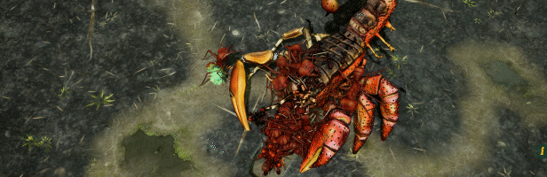 - Kẻ thù của bạn cũng đa dạng không kém – ngoài các bầy kiến khác, bạn sẽ giao chiến với nhện, động vật lưỡng cư, động vật giáp xác và rất nhiều loài côn trùng khác. Những sinh vật mạnh mẽ và thường (tương đối) khổng lồ này là một mối đe dọa đặc biệt đối với một bầy đàn không được chuẩn bị, và chỉ có chiến thuật vượt trội mới có thể vượt qua chúng. Một đòn tấn công bao vây có thể né được màn phun sương gây choáng của bọ cánh cứng đuôi kìm trưởng thành, trong khi việc cô lập chiến thuật và áp đảo từng con ốc mượn hồn một sẽ khiến chúng bị tiêu diệt nhanh hơn trước khi chúng kịp co mình lại để chữa lành.